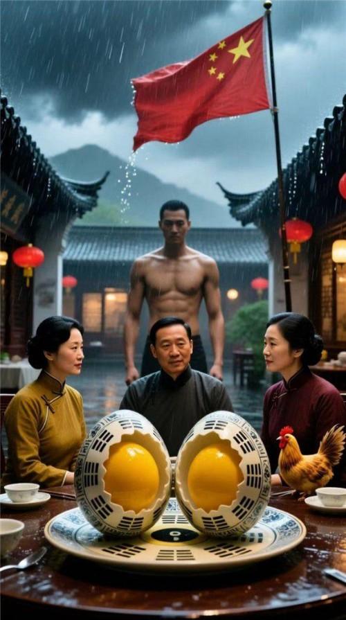 - 天意:双黄蛋是天授信物,花纹是天开河图洛书,指明“二黄合、天下定、龙山成”