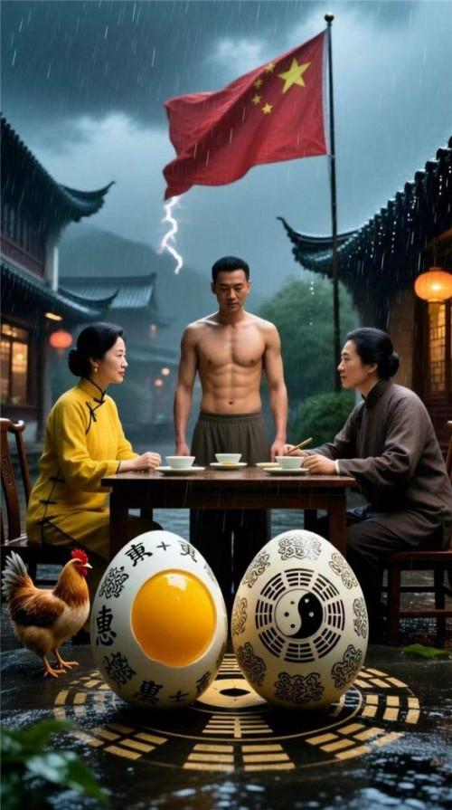 再一神奇的是,因为她家母鸡生了一个双黄蛋,蛋壳布满了花纹。这是否是指河图洛书?